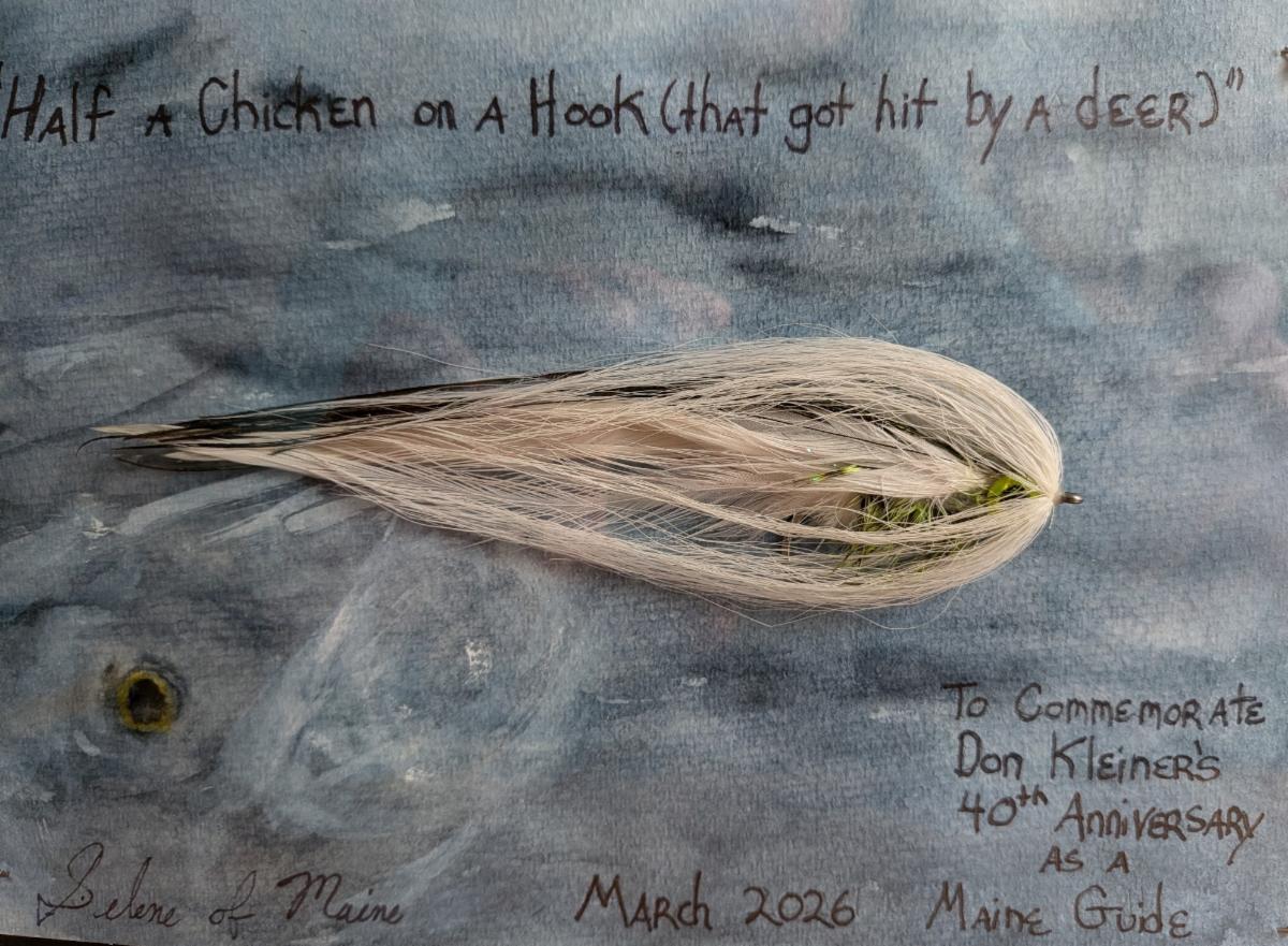 Selene developed a fly to commemorate my guiding anniversary (picture at the top of this column). A nice take on the fly I have called for years my half a chicken on a hook. She even had one swimming in the test tank and for the record I know it will be a great fly for pike, freshwater bass and stripers. You can guess the first fly I will be casting on that big day out.