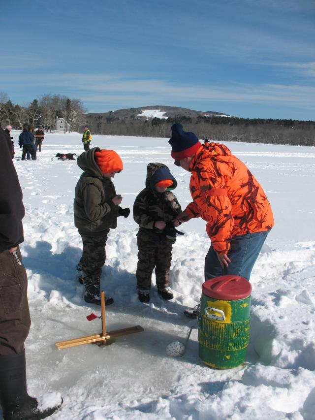 Maine Outdoors offers half day ice fishing trips between January 17 and March 1, 2026.